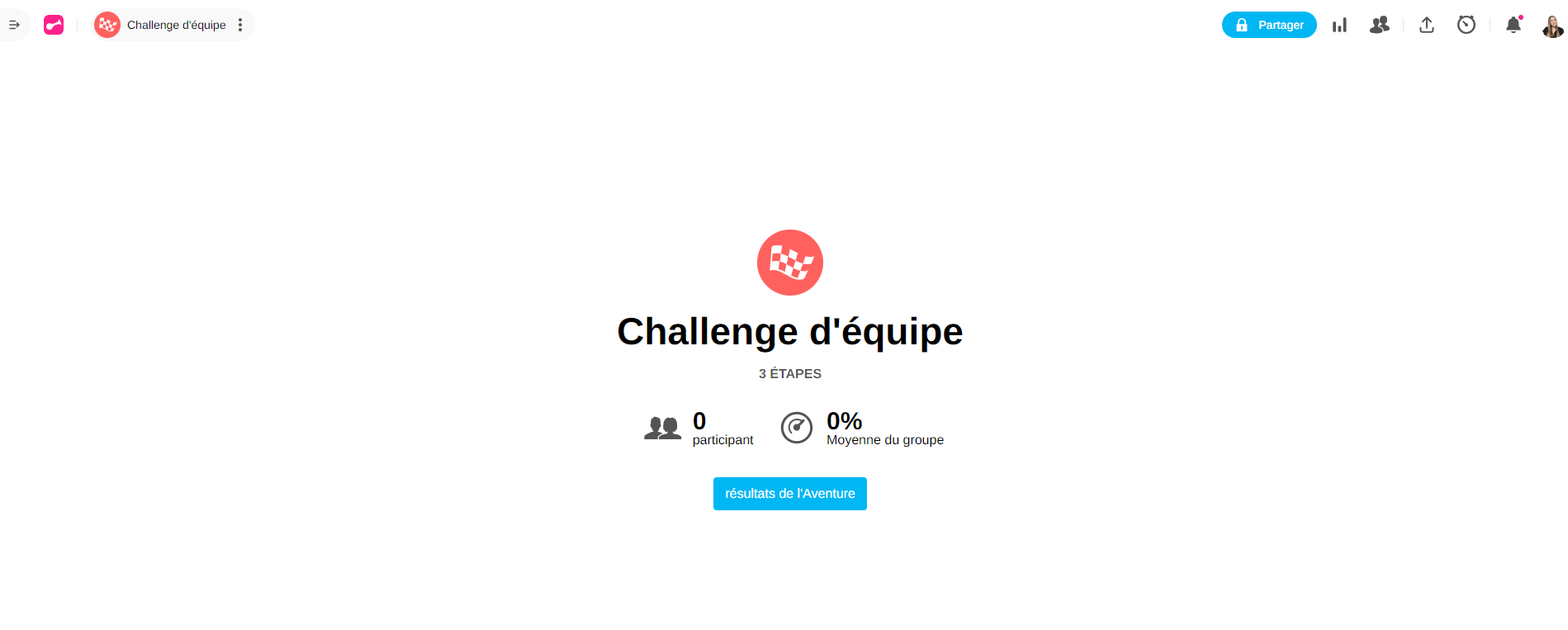 Option Rejouer : Après avoir terminé l'Aventure, les participants peuvent la recommencer pour améliorer leur score (cette option est désactivée si l'Aventure est placée dans une Session)