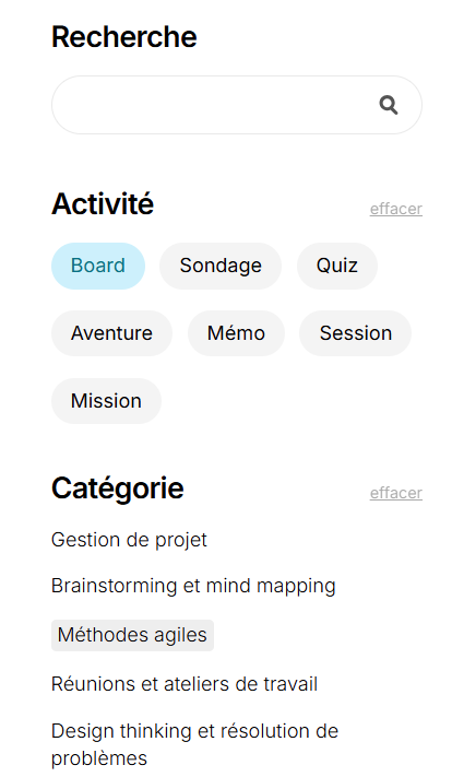Effectuez une recherche ou filtrer les Templates selon l'activité ou les catégories proposées