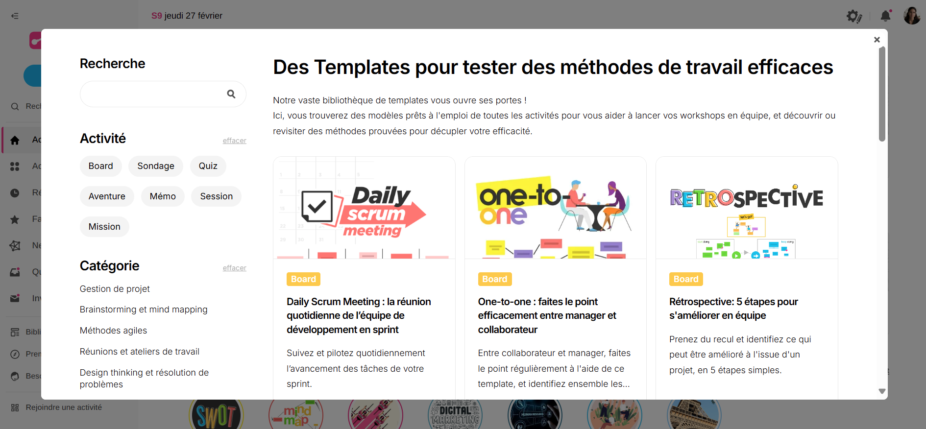 Depuis votre compte Klaxoon, sélectionnez "Bibliothèque de templates" dans le menu latéral situé à gauche.
