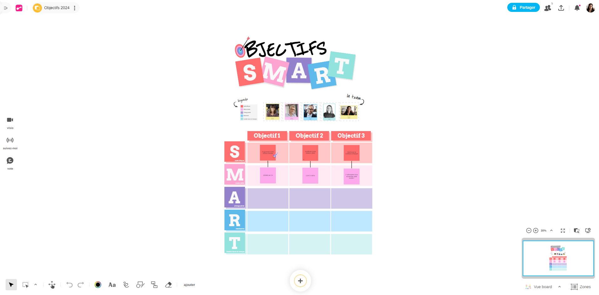 Que ce soit pour vos réunions de synchronisation d'équipe, des séances d'idéation ou le pilotage d'un projet, des possibilités infinies s'offrent à vous pour passer de l'idée à